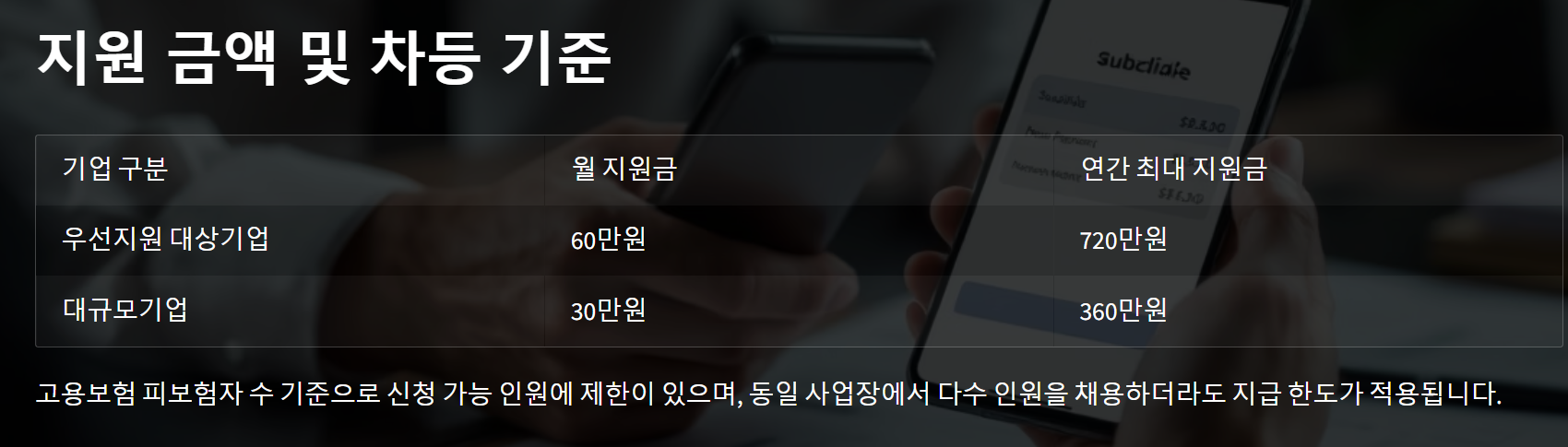 - 연 최대 720만원까지 기업 규모에 따라 지원