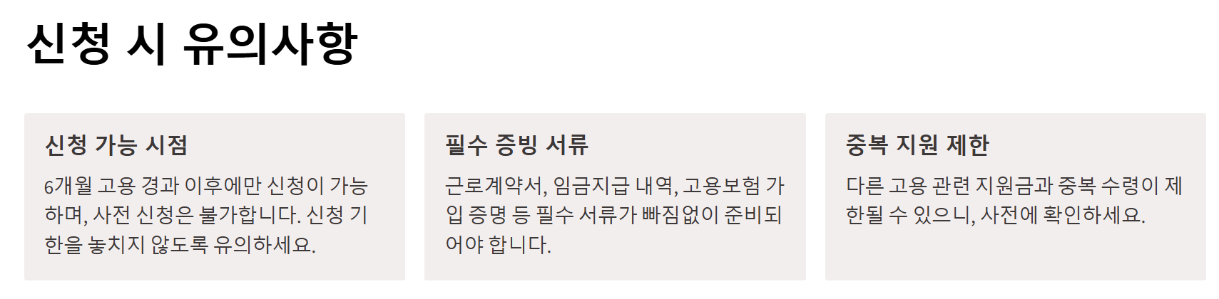 - 고용보험 피보험자 기준, 온라인 또는 고용센터를 통해 신청