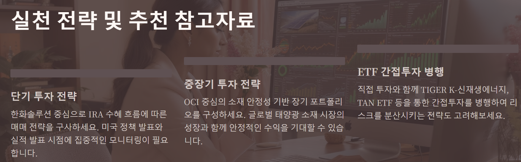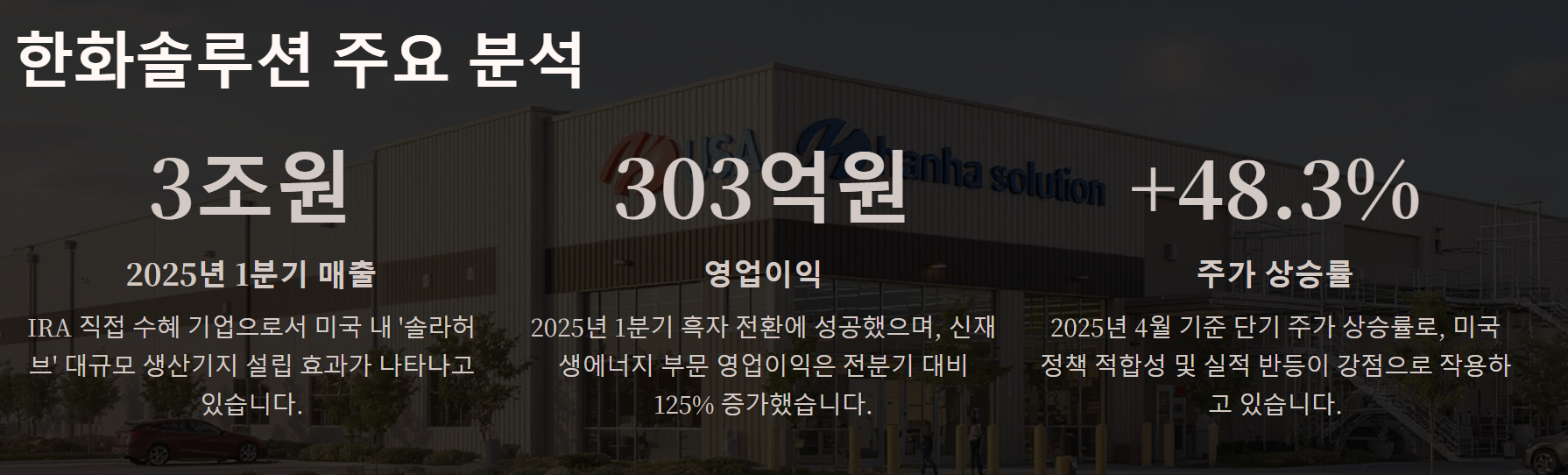 👉 단기 수익률과 미국 정책 수혜를 기대한다면 한화솔루션,