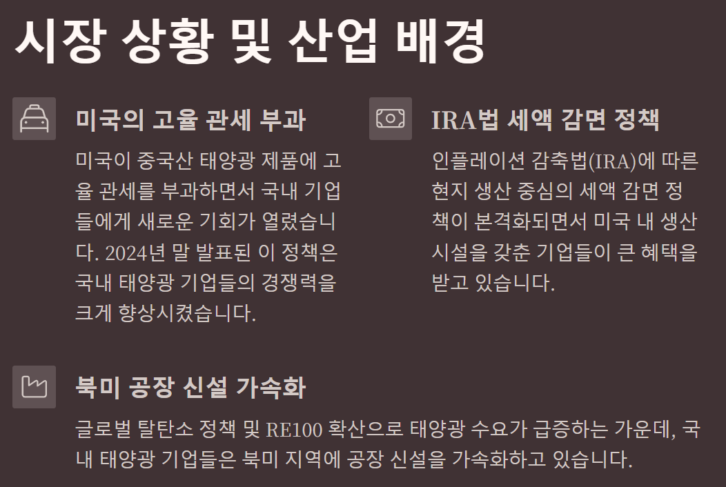 - 미국 조지아주에 '솔라허브' 공장을 신설하여 관세 부담 없이 공급 가능
