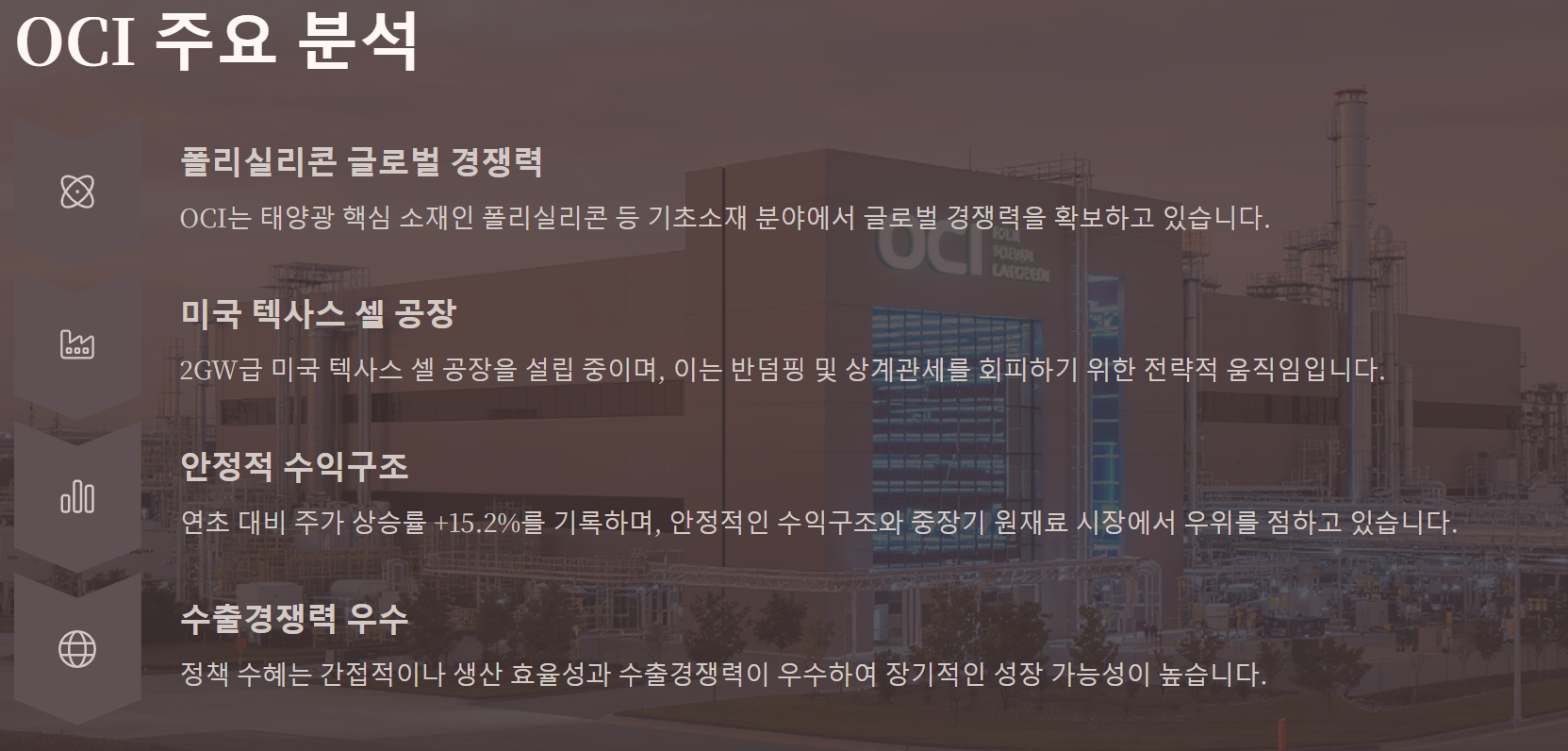 OCI는 폴리실리콘 분야에서 글로벌 경쟁력을 보유한 기업입니다.