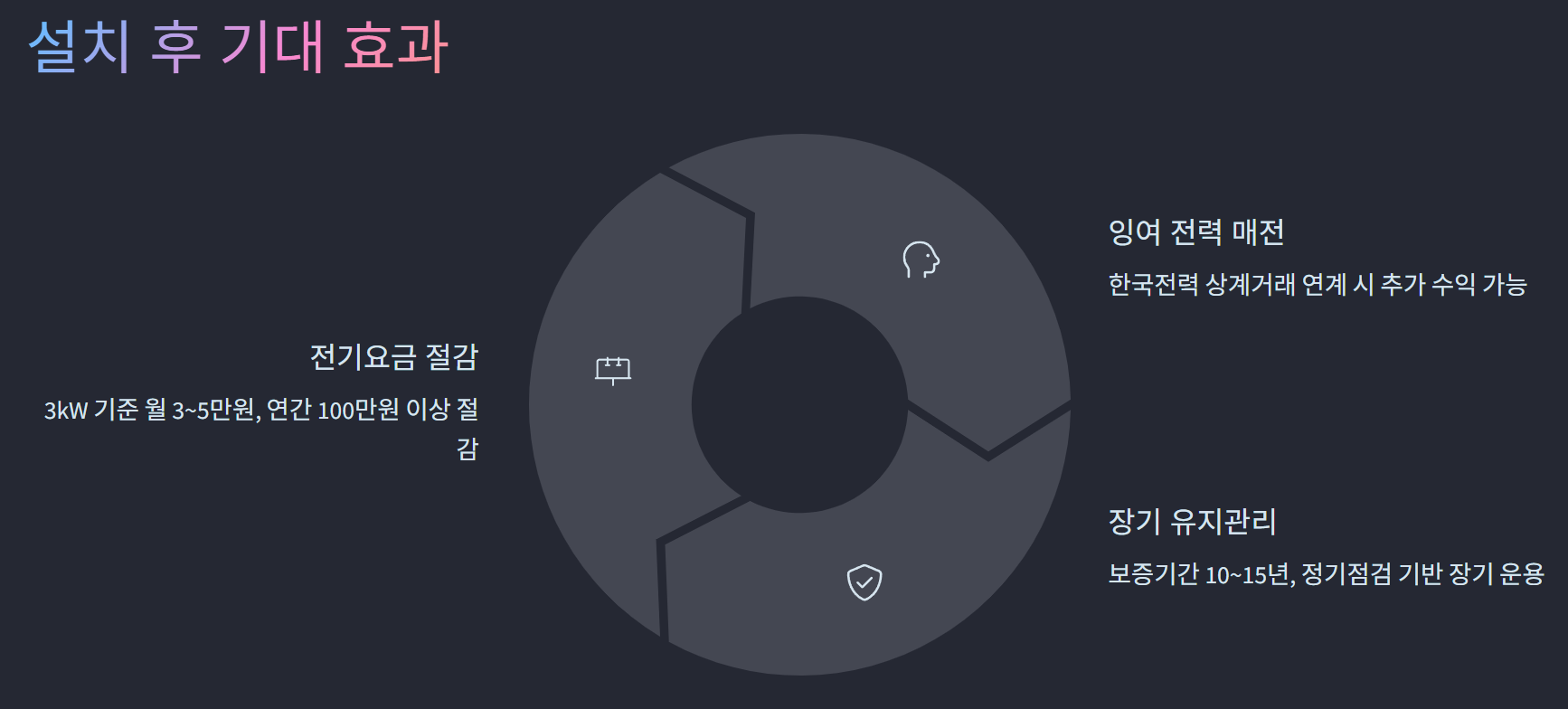 답변: 3kW 기준, 월 약 3~5만 원 절감 가능. 연간 100만 원 이상 절감 사례도 있어요.
