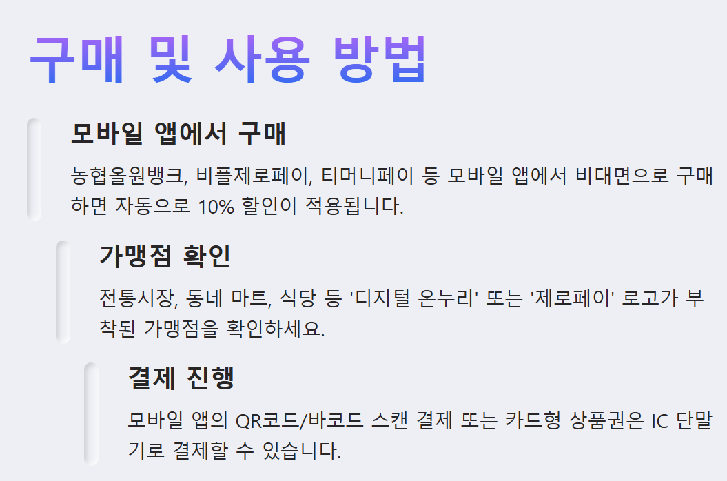 👉 농협올원뱅크, 티머니페이, 비플제로페이, 지역상품권 앱 등에서 구매 가능