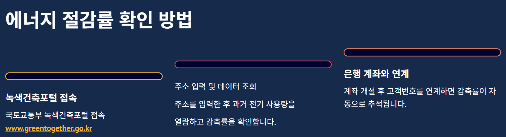 에너지 절감률을 확인하려면 녹색건축포털에서 내 거주지 전기 사용량을 확인해야 합니다.