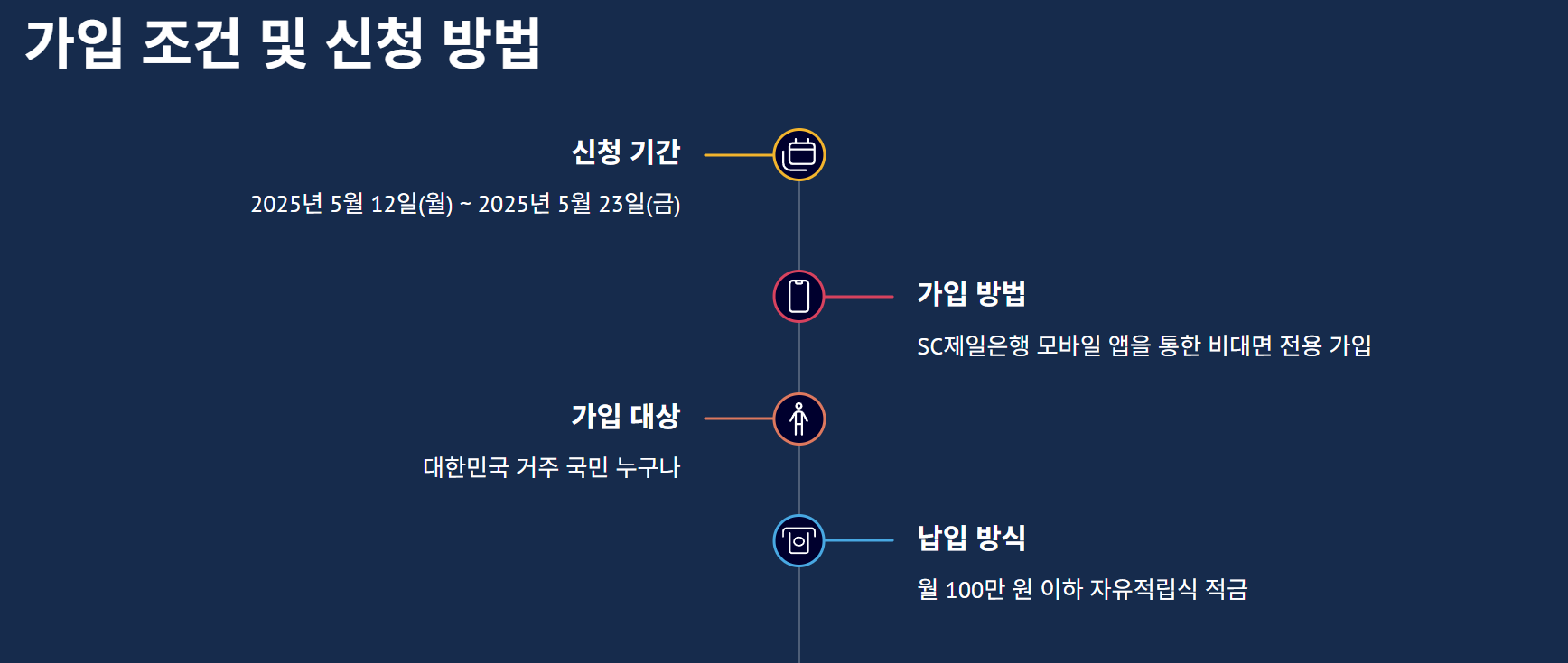 - 신청 방법: SC제일은행 모바일 앱 (비대면 신청 전용)