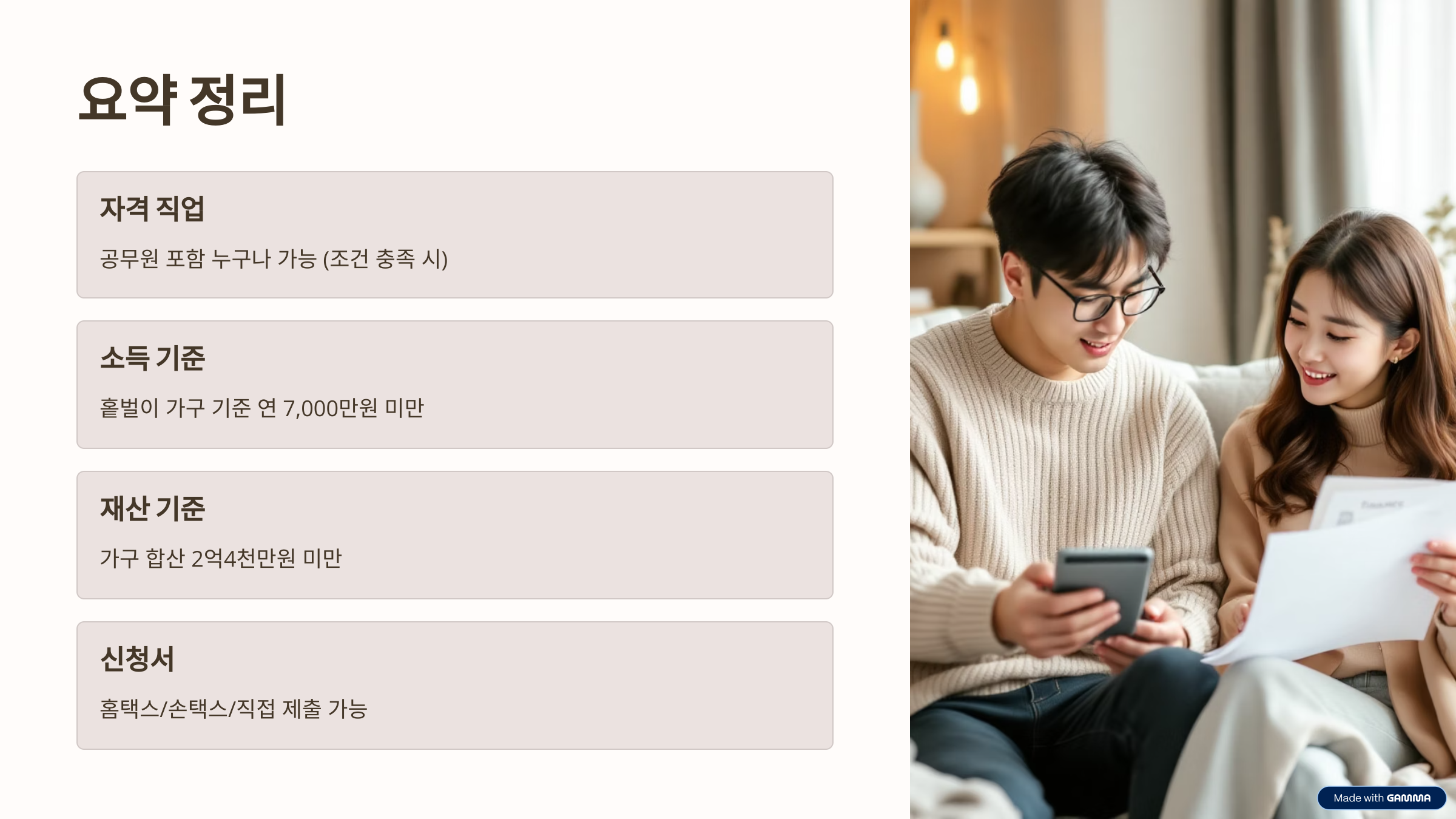 중요한 건 ‘직업’이 아니라 소득과 재산 기준입니다.